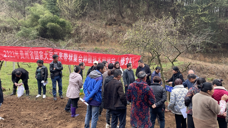 4月19日,走進(jìn)修文縣大石布依族鄉(xiāng)大石村大豆玉米帶狀復(fù)合種植示范點,農(nóng)技人員正在給村民們作培訓(xùn),并現(xiàn)場示范操作,向他們傳授種植技術(shù)要領(lǐng)。