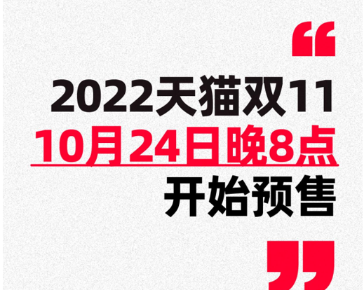 天貓2022雙11定檔:10月24日晚8點(diǎn)啟動預(yù)售
